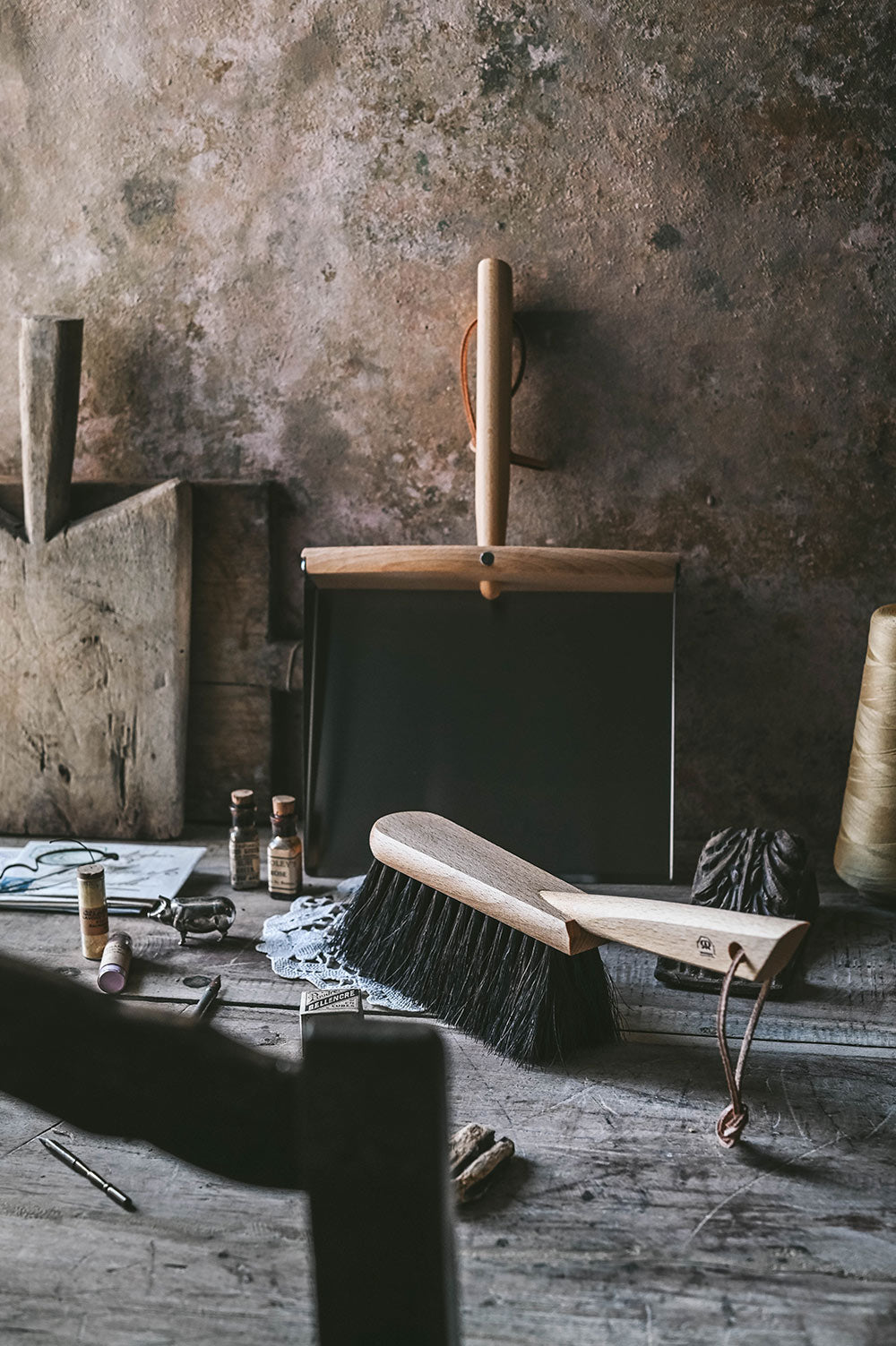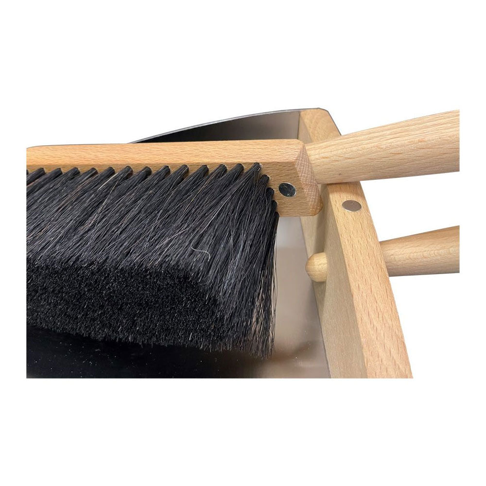 This dustpan and hand brush are held together with a simple magnetic feature that makes them easy to grab and store. Horsehair is excellent for sweeping. The dense bristles adapt to different surfaces without creating static, lifting dust, sand, and dirt cleanly.