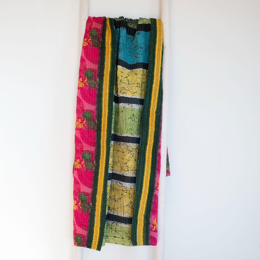 - multiple quilted layers of reclaimed sari material make this Kantha throw thicker and warmer